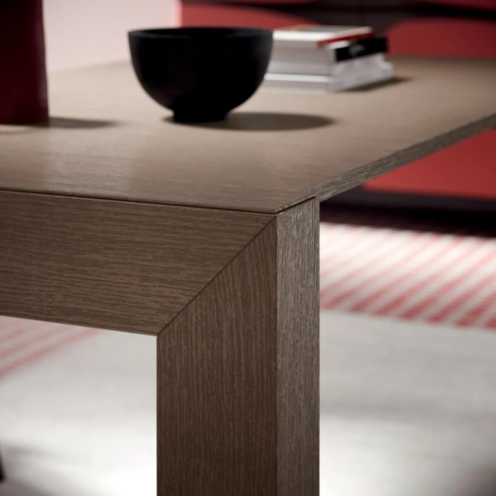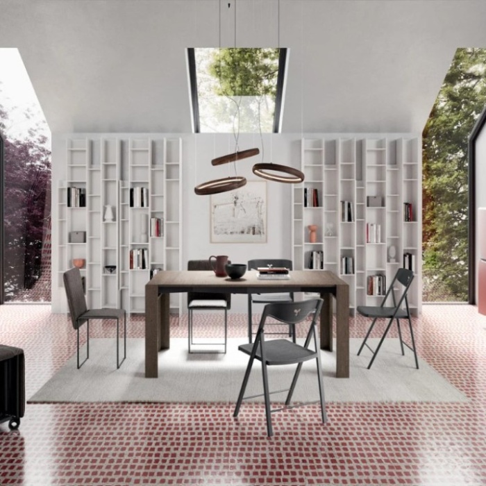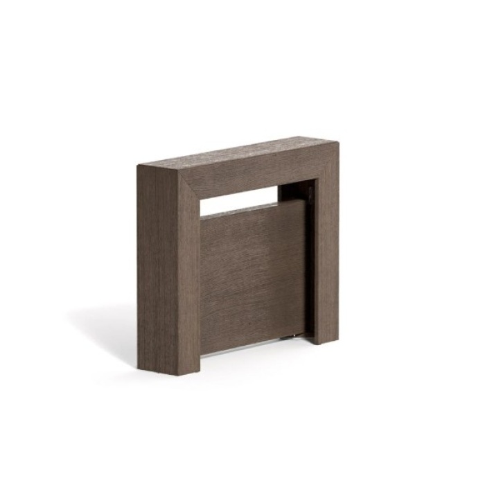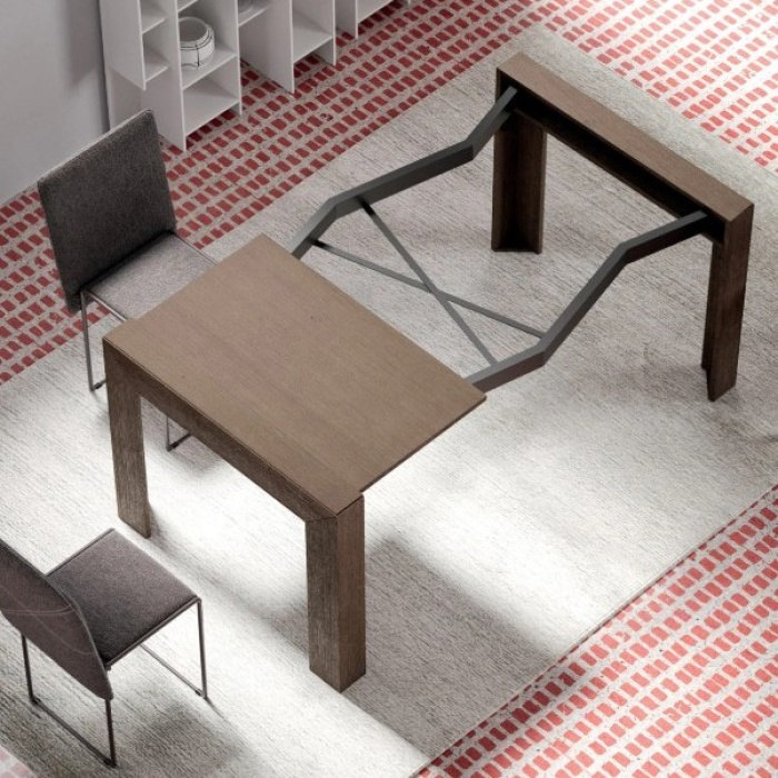 Il design è lineare, essenziale, con un’estetica sobria che valorizza lo spazio senza appesantirlo. Il profilo sottile della struttura contribuisce a mantenere un aspetto leggero e contemporaneo, anche quando la consolle è completamente estesa.