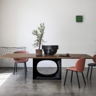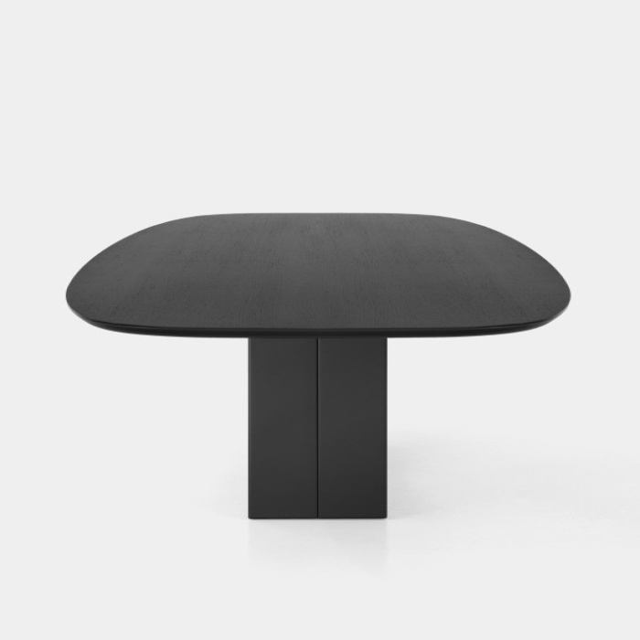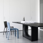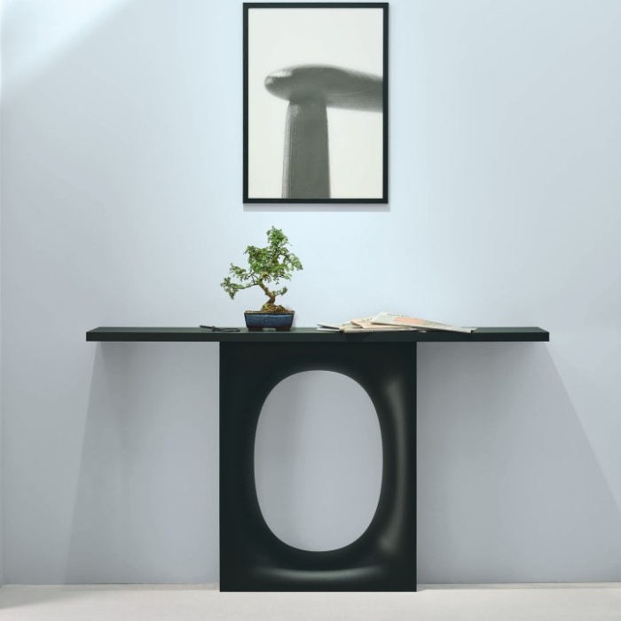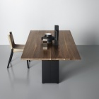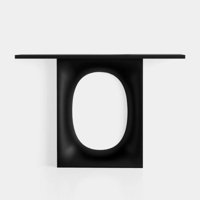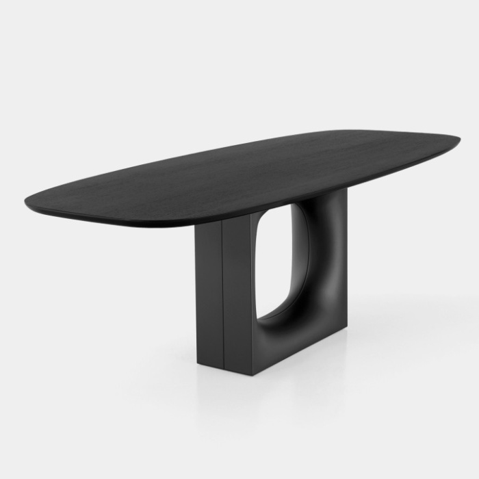 La collezione Holo si sviluppa in diverse varianti: tavoli con piani rettangolari o ovali, versioni con basamento centrale o doppio, e anche console eleganti e compatte, ideali per spazi contenuti ma ricercati. I piani sono disponibili in differenti finiture e materiali, tra cui anche il resistente ed elegante Laminam®.