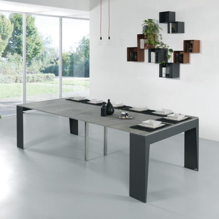 La sua progettazione avanzata consente di passare facilmente da una consolle compatta a un tavolo ampio capace di ospitare fino a 12 persone, offrendo una combinazione perfetta di stile e praticità.