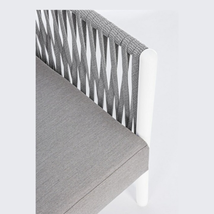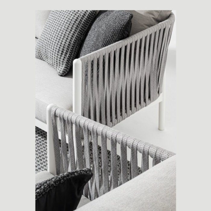 La struttura in alluminio verniciato a polvere e l’intreccio in corde Tetoron garantiscono resistenza e stile.