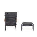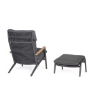 Lo schienale presenta un elegante intreccio in corde di poliestere, che conferisce alla poltrona un aspetto contemporaneo e allo stesso tempo accogliente.