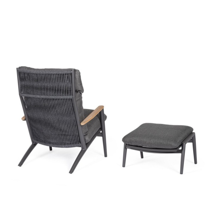 La Poltrona Ibisco di Bizzotto è disponibile nel colore Antracite – Cod. 0663821, facilmente abbinabile ad altri complementi d’arredo per esterni.