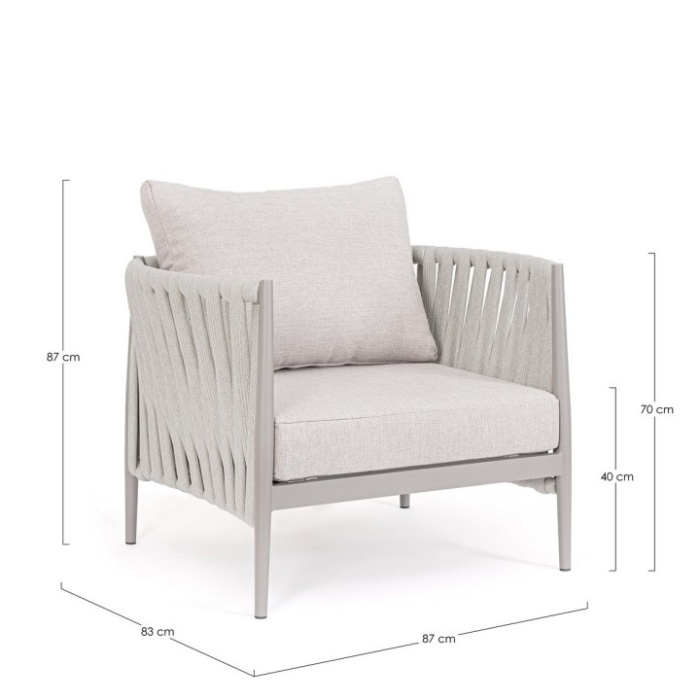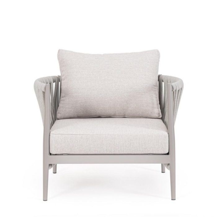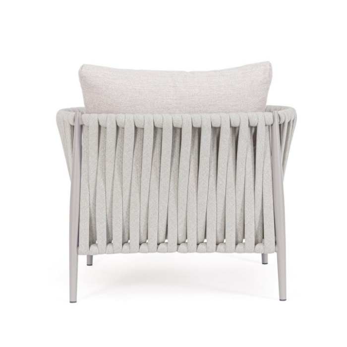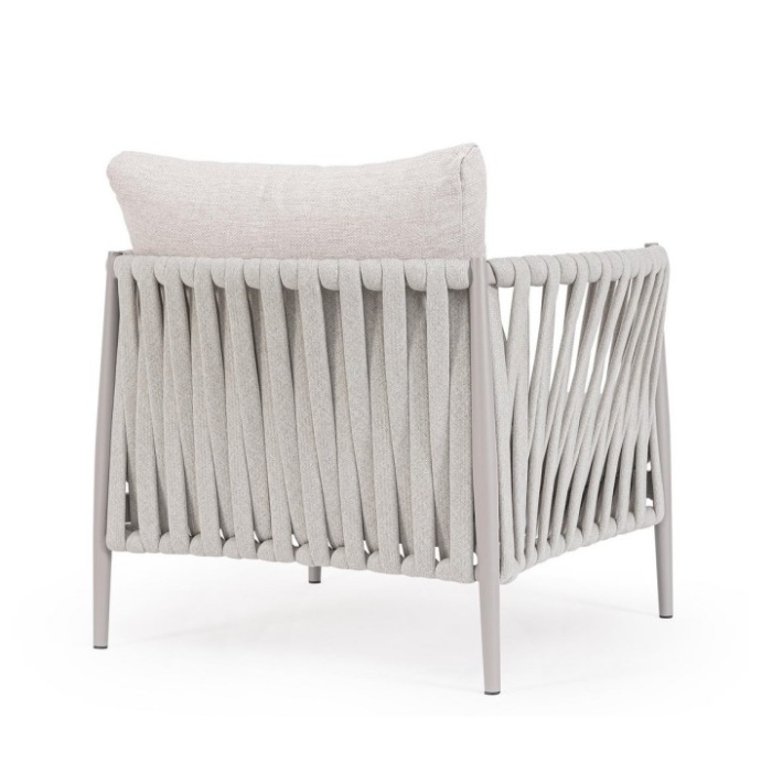 La Poltrona Jacinta di Bizzotto si distingue per un design contemporaneo e accogliente, perfetto per creare angoli relax su terrazze, balconi o giardini.