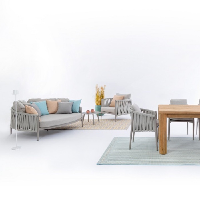 L’elemento distintivo è il raffinato intreccio realizzato con corde in Tetoron (100% poliestere), materiale resistente agli agenti atmosferici e dall’elevata stabilità.