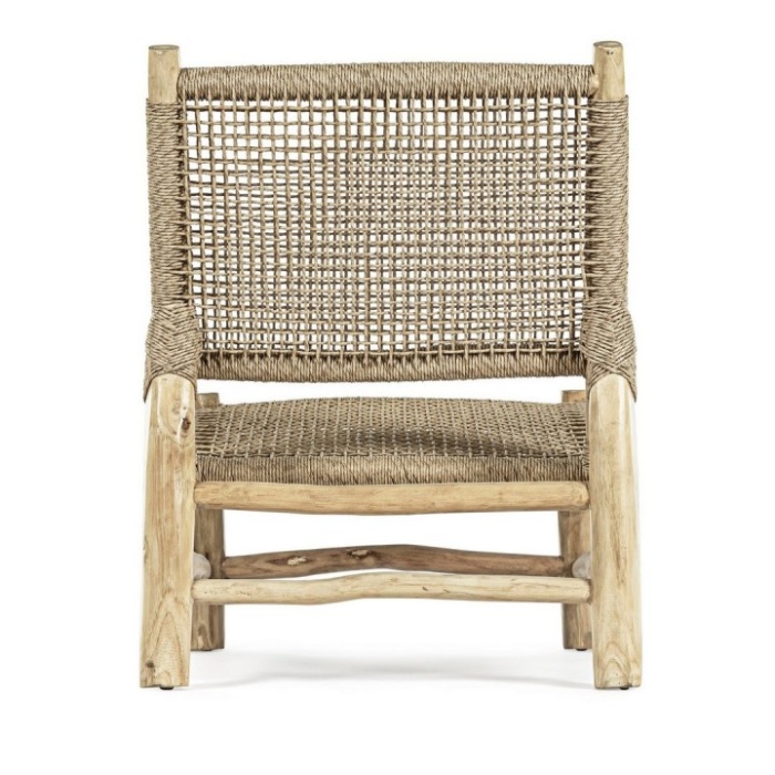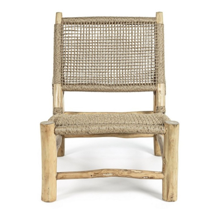 Realizzata con struttura in rami di teak, ogni poltrona è un pezzo unico, grazie alle forme irregolari e naturali del legno, che rendono ogni articolo diverso dall’altro.