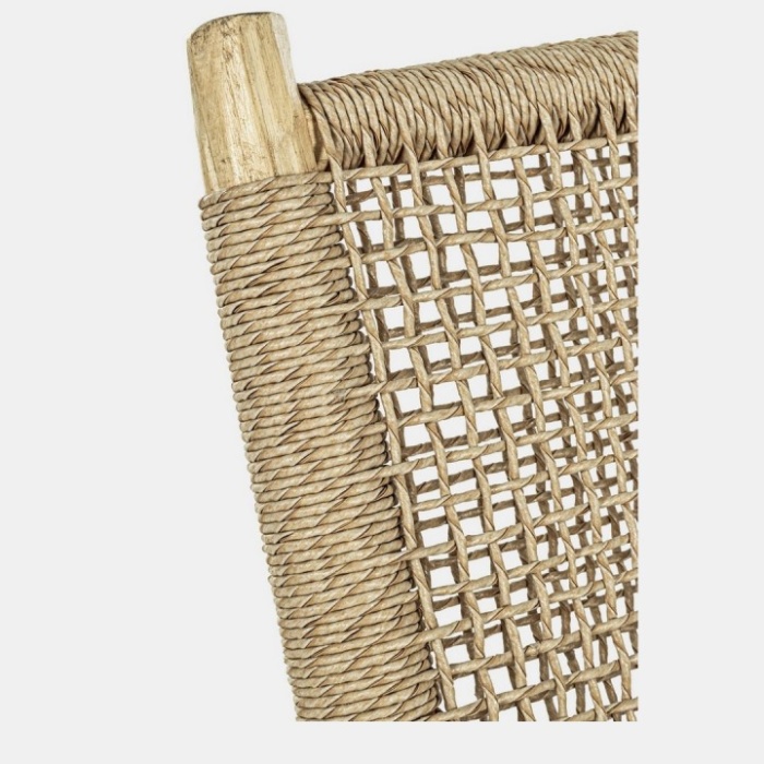 Realizzata con struttura in rami di teak e intreccio in fibra sintetica Viro, ogni pezzo è unico grazie alle forme naturali del legno.