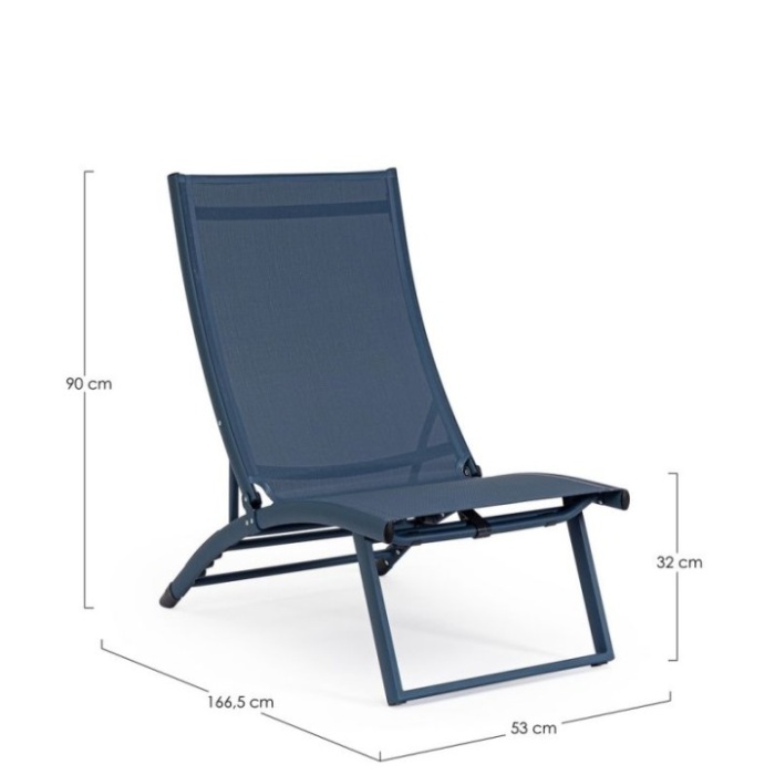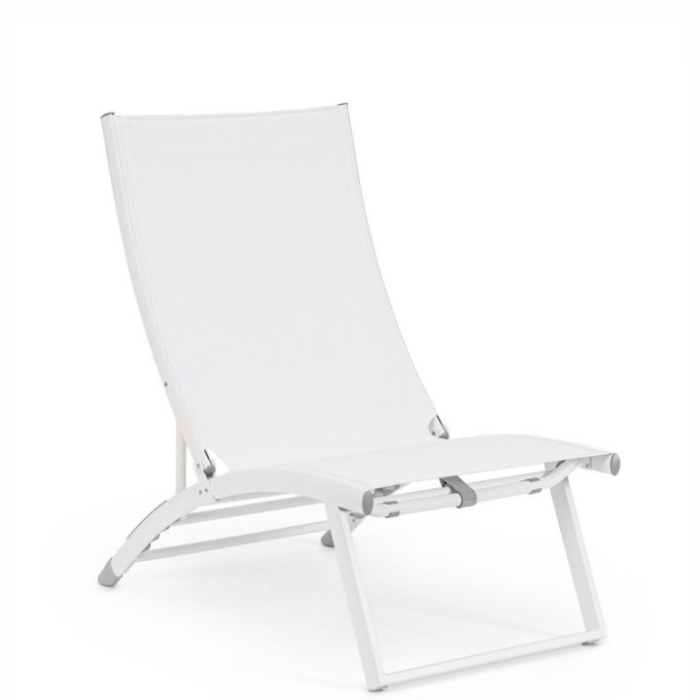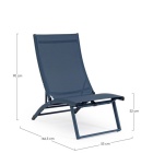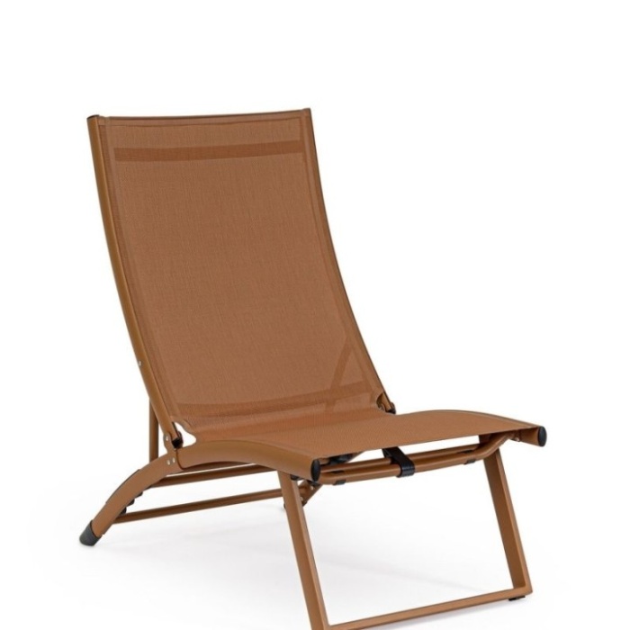 La seduta e lo schienale sono in textilene 2x1 (610g/m2), un materiale tecnico e traspirante, pensato per offrire il massimo comfort nelle stagioni più calde.