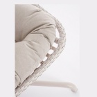 Il cuscino non sfoderabile è realizzato in tessuto poliestere idrorepellente, pensato per offrire comfort anche all’esterno, mantenendo la facilità di pulizia.