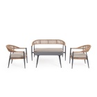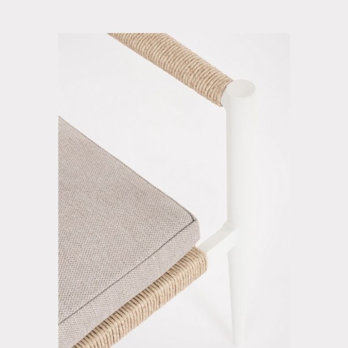 Realizzato con struttura in alluminio verniciato a polvere e intreccio in fibra sintetica twisted, combina design moderno e materiali resistenti.