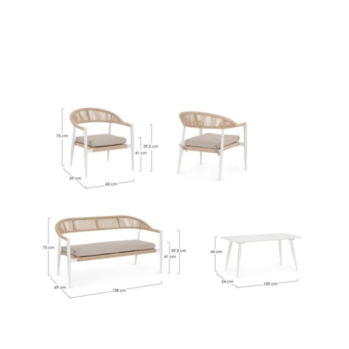 La struttura in alluminio verniciato a polvere (poliestere) garantisce resistenza agli agenti atmosferici e stabilità, mentre l’intreccio in fibra sintetica twisted conferisce uno stile caldo, accogliente e contemporaneo.