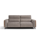 Disponibile nella versione a due o tre posti, si distingue per i braccioli decorati con fascia in pelle a contrasto e la base in metallo che dona leggerezza alla struttura.