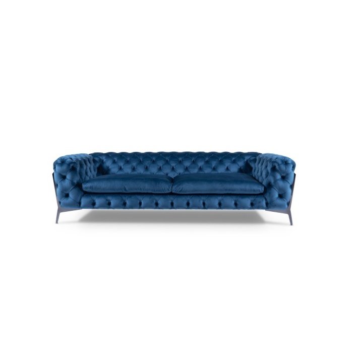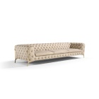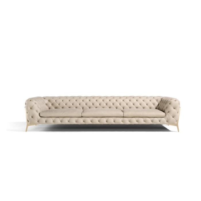 Dall’esperienza e dall’abilità sartoriale dei maestri artigiani di Calia Italia nasce la lavorazione capitonné che riveste il divano, ad eccezione della seduta impreziosita da un bordino decorativo.