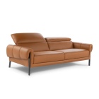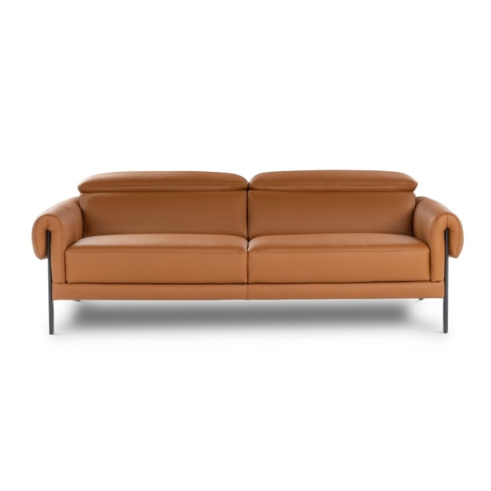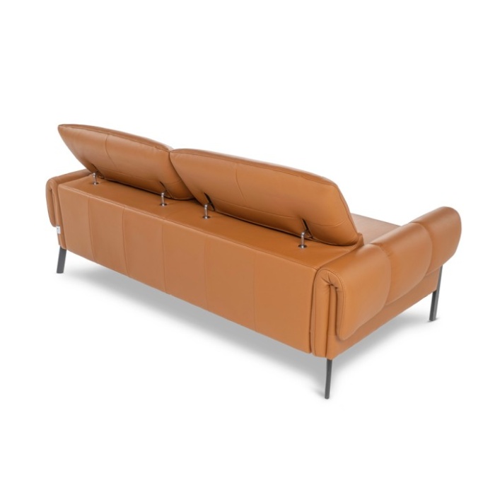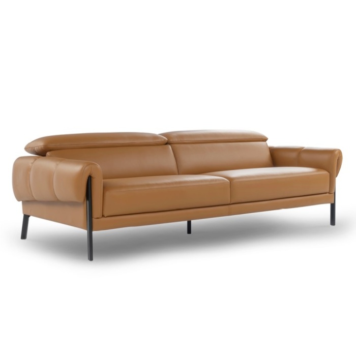 Elegante divano base aperta, in stile contemporaneo è dotato di poggiatesta sollevabili che aumentano l’altezza della spalliera per trasformare la sua eleganza in un’esperienza di comfort.