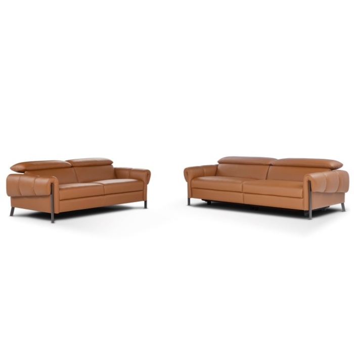 Elegante divano base aperta, in stile contemporaneo è dotato di poggiatesta sollevabili che aumentano l’altezza della spalliera per trasformare la sua eleganza in un’esperienza di comfort.