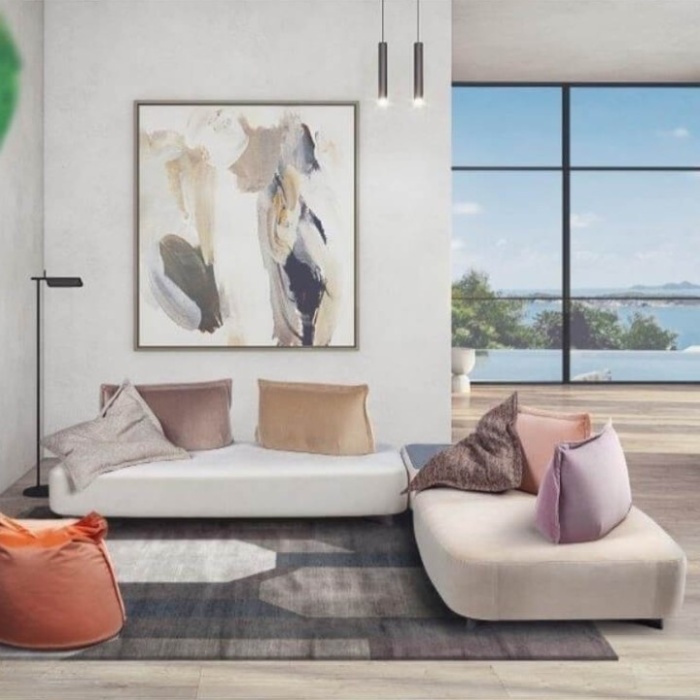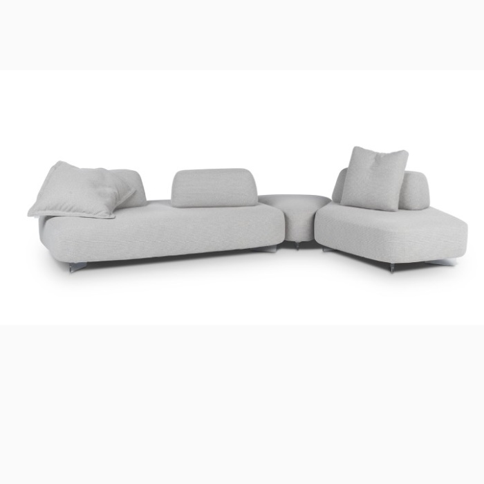 I singoli moduli possono essere scomposti, i cuscini e le spalliere possono essere spostati, posati per terra, sparsi per casa, in base alle più disparate esigenze e consentono di modulare gli spazi in maniera flessibile e sempre nuova.