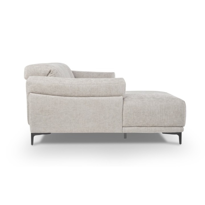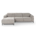 Dispone di poggiatesta sollevabile e poggia su piedini in metallo disponibili in diverse finiture.