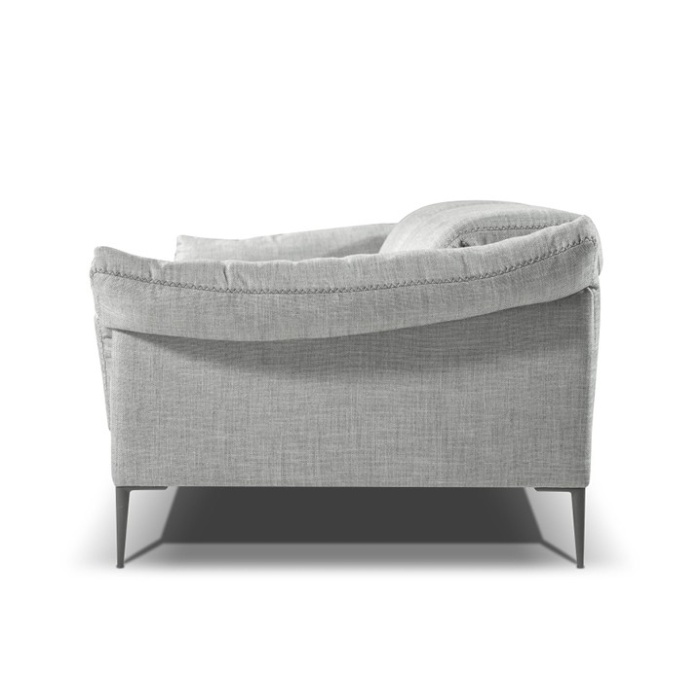 La bellezza di Elisir nasce dal contrasto: le forme morbide che caratterizzano il divano si posano su piedini a spillo sottili e rigorosi, mentre una particolare cucitura decorativa ripercorre la linea del modello esaltandone il design.