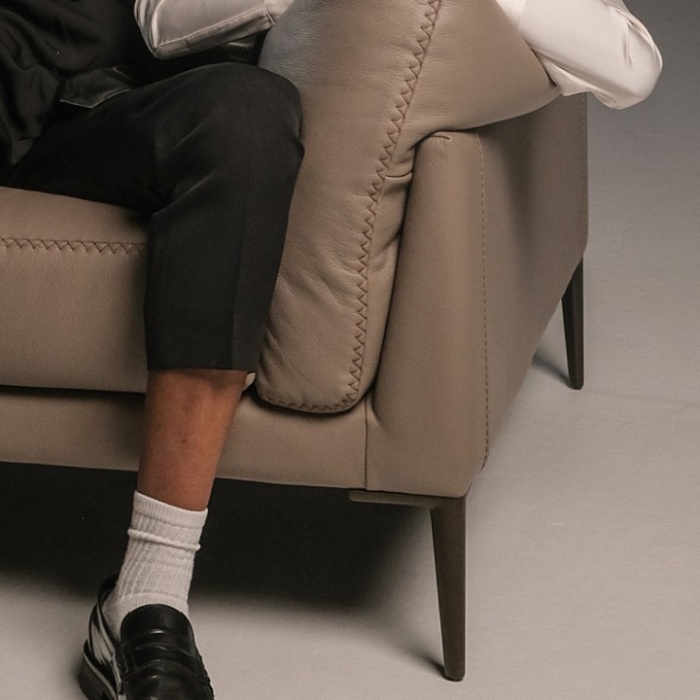 • Cuciture: il rivestimento in pelle è realizzabile con filo a contrasto nelle varianti di colore disponibili, inoltre prevede tagli differenti rispetto al rivestimento in microfibra. Il modello è dotato di cucitura decorativa (ricamo n°1 _ 1 ago), presente sulla cuscinatura.