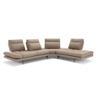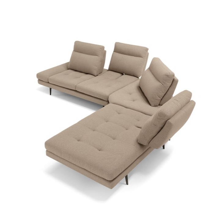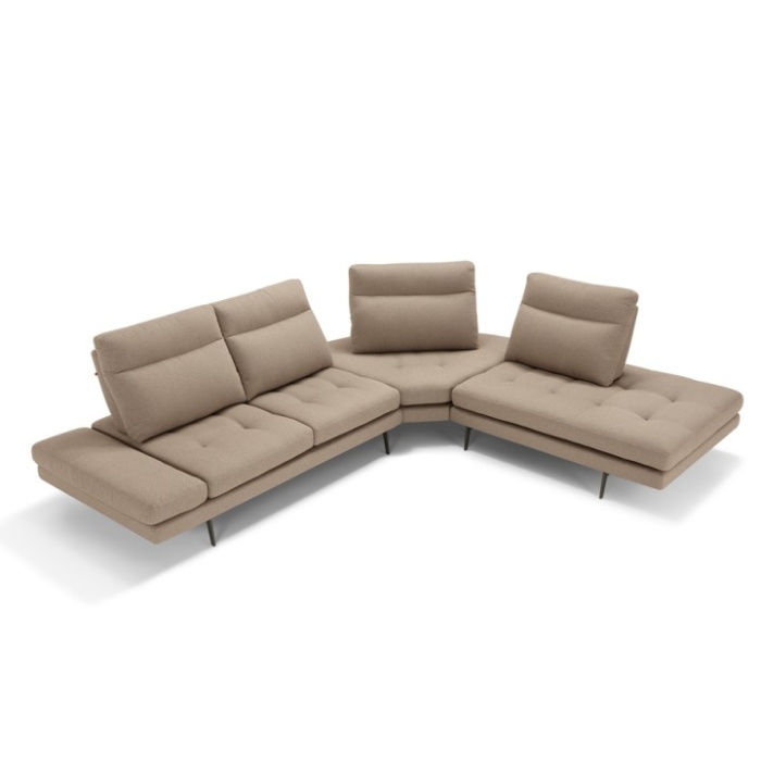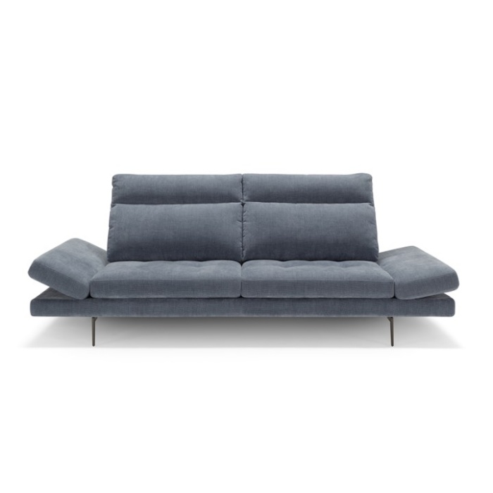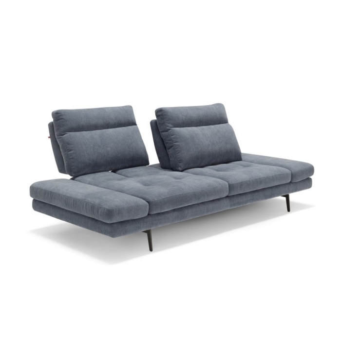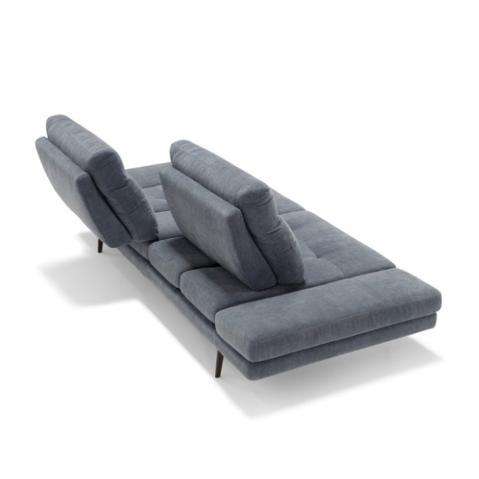 Il rivestimento è disponibile in pelle o tessuto parzialmente sfoderabile, offrendo diverse opzioni di personalizzazione per adattarsi al meglio allo stile del proprio salotto. Le cuciture a contrasto, proposte come optional, impreziosiscono ulteriormente il divano donandogli un tocco artigianale ed elegante.