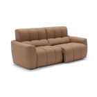 Il rivestimento disponibile in pelle o tessuto permette di adattare il divano a qualsiasi contesto stilistico, offrendo anche un’interessante opzione con cucitura a contrasto, ideale per chi cerca un tocco originale e distintivo.