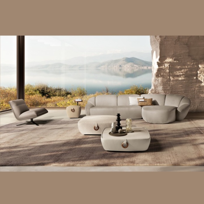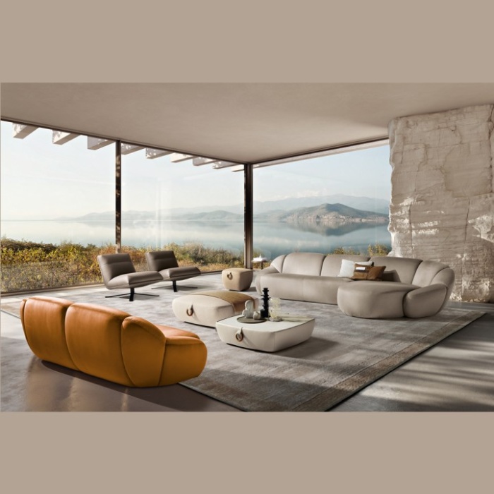 Perfetto per spazi contemporanei, il Panuma è disponibile in pelle o tessuto, offrendo la possibilità di personalizzare lo stile in base ai propri gusti.