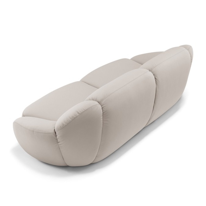 Le cuciture profonde in verticale, vere protagoniste del design, scolpiscono i volumi con precisione artigianale, trasformando le forme in elementi decorativi eleganti e morbidi.