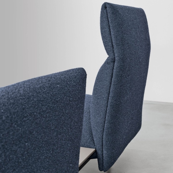 Ogni elemento è componibile e personalizzabile: puoi creare un divano lineare, un’ampia penisola, una composizione ad angolo o con tavolini integrati. I cuscini imbottiti sono disponibili con o senza poggiatesta reclinabile, per un comfort su misura. Il rivestimento in tessuto o pelle presenta finiture sartoriali di alta qualità, pensate per dare carattere e raffinatezza a ogni ambiente. Tenso si presta a spazi domestici contemporanei o lounge contract dal look minimale ma sofisticato.