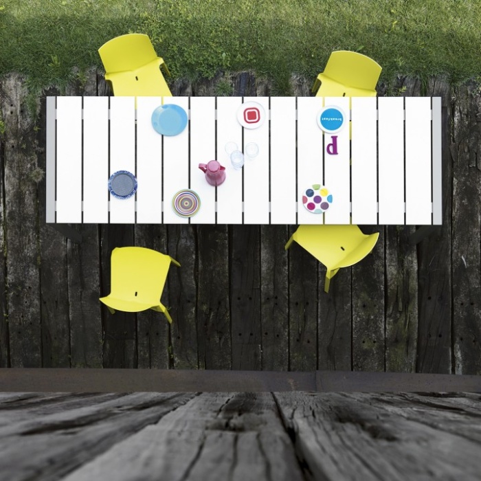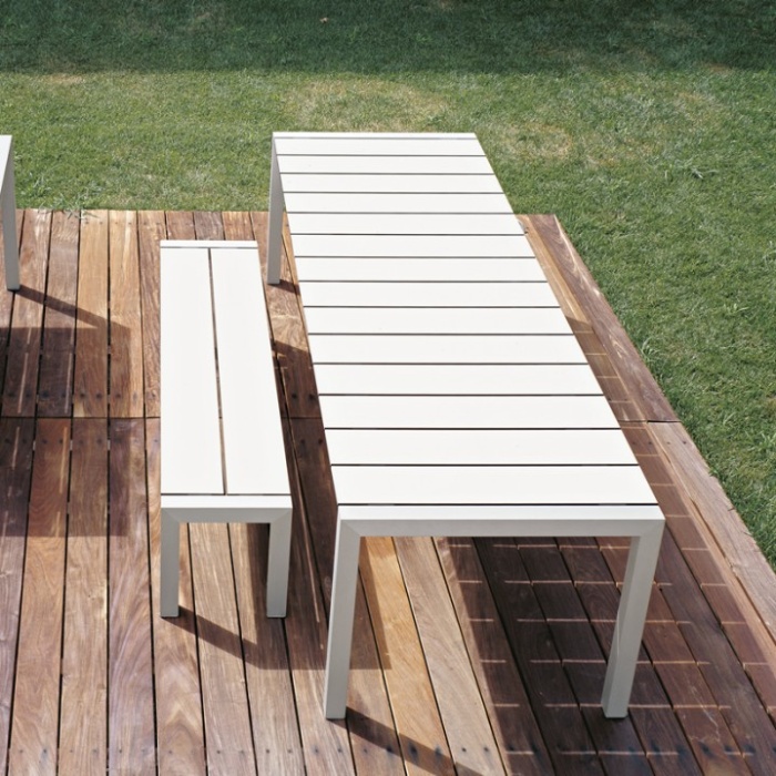 Il tavolo Sushi Slatted di Kristalia, disegnato da Bartoli Design, è una soluzione elegante e resistente per ambienti indoor e outdoor. Il piano a doghe in Fenix-NTM è piacevole al tatto, leggero e inalterabile, mentre la struttura in alluminio anodizzato lo rende ecologico e ideale per l'esterno. Disponibile anche in versione panca coordinata, è un elemento d’arredo versatile e raffinato.