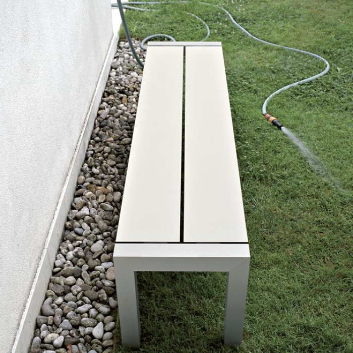 A questo si unisce la struttura in alluminio anodizzato, un materiale leggero, solido ed ecologico, perfetto per chi cerca un prodotto di design che duri nel tempo anche in ambienti outdoor. La collezione comprende anche una panca coordinata, che può essere usata come seduta o come pratico elemento decorativo, con l'aggiunta del cuscino Lips removibile.
