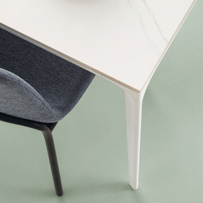 Tavolo fisso da pranzo o cucina mod. Mercury marchio Target Point, con struttura in alluminio, piano rettangolare in gres porcellanato.