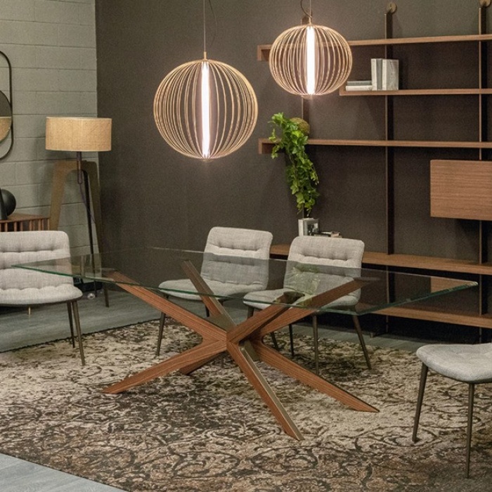 Blade si distingue per la sua base centrale unica, un elemento di design che unisce stabilità e leggerezza in un equilibrio perfetto. Realizzata in acciaio verniciato o impreziosita da una cover in legno, la base si apre elegantemente verso il piano d’appoggio, creando un effetto visivo dinamico e armonioso. Le linee fluide e raffinate lo rendono un vero protagonista della scena, perfetto per ambienti contemporanei che esigono eleganza e personalità. Il piano, disponibile con bordo regolare o bisellato, enfatizza il carattere esclusivo del tavolo, offrendo versatilità e adattabilità a vari contesti d’arredo. Grazie alla combinazione di materiali di alta qualità e un design ricercato, questo tavolo diventa non solo un complemento funzionale, ma anche un elemento decorativo capace di valorizzare ogni spazio. Ideale per chi desidera un tavolo che coniughi estetica e praticità, trasformando la zona pranzo o il living in un ambiente di grande fascino e stile.
