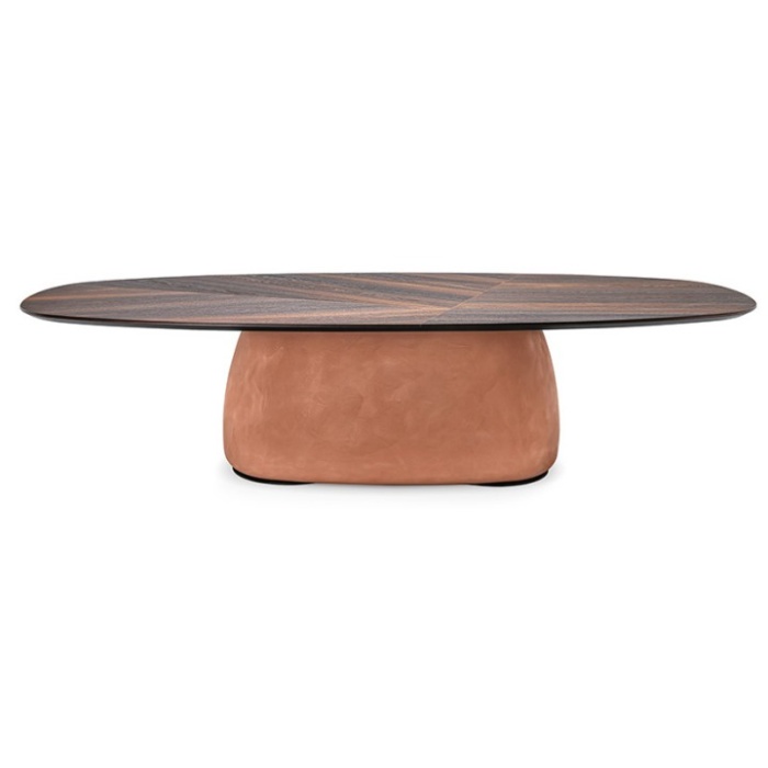 La base statuaria di Botero Wood rievoca il linguaggio dell’omonimo artista, definito da volumi abbondanti che valorizzano i soggetti in tutta la loro bellezza e sensualità. Allo stesso modo, la lavorazione in argilla ci permette di apprezzare le forme e l’alta componente artigianale di questo tavolo da sala.