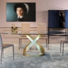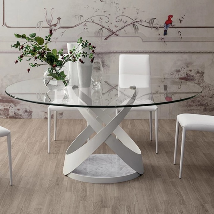 Capri è un tavolo che celebra l’eccellenza del design italiano, unendo forza strutturale e raffinata eleganza in un equilibrio perfetto. La solida struttura in metallo si fonde con la preziosa base in marmo, creando un contrasto armonioso tra matericità e leggerezza. Il piano fisso in vetro, trasparente e resistente, completa il tavolo con un tocco di luce e delicatezza, esaltando la purezza delle linee e la cura dei dettagli.