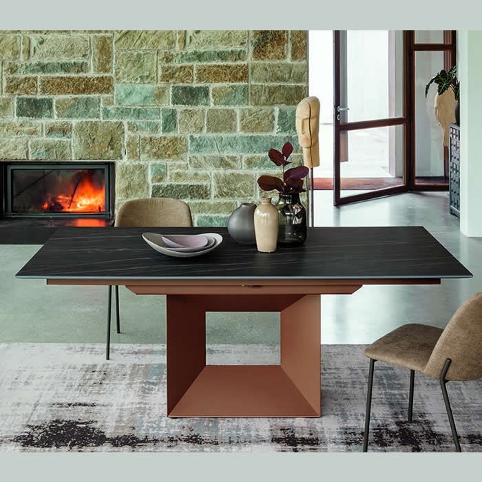 Defense 200 di Compar è un tavolo fisso dalla struttura robusta in metallo e con piano in ceramica di alta qualità. Le sue dimensioni generose lo rendono ideale per sale da pranzo spaziose, mantenendo un'estetica moderna e minimale.