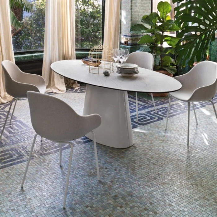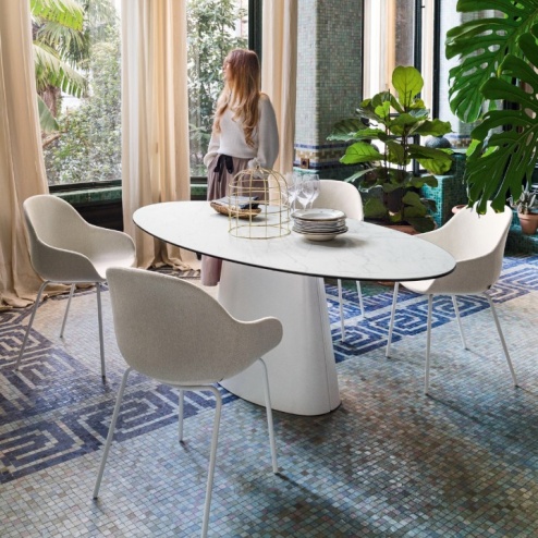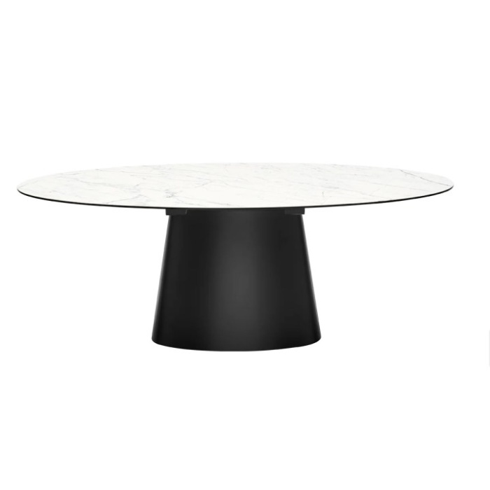 Il tavolo Connubia modello Ellisse con piano in ceramica e basamento centrale in metallo è un'opera d'arte di arredamento che unisce l'estetica sofisticata e la robustezza. Questo tavolo è progettato per soddisfare le esigenze di chi cerca un pezzo d'arredamento di alta qualità con uno stile moderno ed elegante.