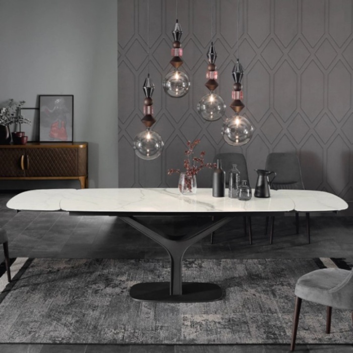 Questo tavolo incarna l’incontro perfetto tra solidità e leggerezza, trasformando la fermezza dell’acciaio in un’eleganza fluida e dinamica. La base, caratterizzata da curve sinuose e armoniose, dona un senso di movimento e leggerezza, conferendo al tavolo un’estetica sofisticata e contemporanea. Ogni dettaglio è studiato per esaltare il connubio tra design e funzionalità, rendendolo un elemento d’arredo capace di trasformare qualsiasi ambiente con stile e personalità. Poggiati su binari in alluminio sapientemente progettati, garantiscono stabilità e sicurezza senza rinunciare all’eleganza. Questo tavolo è la sintesi ideale tra innovazione e artigianalità, un complemento d’arredo raffinato che valorizza gli spazi con un perfetto equilibrio tra estetica e praticità. Un vero protagonista dell’ambiente, capace di unire bellezza e versatilità.