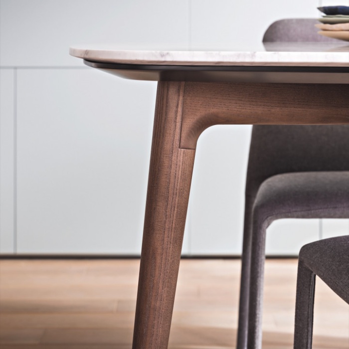 Linee fluide e attenzione ai dettagli caratterizzano il tavolo fisso Hanami, disegnato da Matteo Zorzenoni per Novamobili. Un tavolo che si distingue per la scelta dei materiali di altissima qualità e la forma sagomata del piano che conferiscono un aspetto moderno e ricercato. Hanami si contraddistingue per l'esclusiva forma delle gambe in legno massello inclinate e rastremate verso il pavimento che conferiscono dinamismo e leggerezza. Il pregiato piano ultrasottile in vero marmo o in pietra lavica, disponibile in 4 diverse finiture, lo renderà il protagonista assoluto del tuo arredo. Hanami è un complemento d'arredo dal design fluido che esalta il valore dei materiali naturali. Perfettamente adattabile ad interni dallo stile vintage e moderno, dona una sensazione di calore ed ospitalità alla tua cucina, dining o soggiorno.