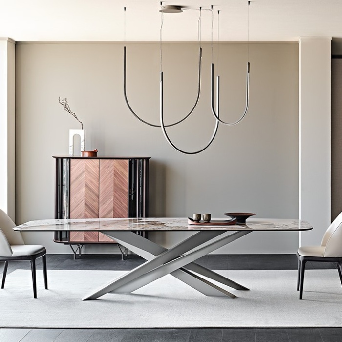 La famiglia di tavoli moderni di design Lancer sfoggia uno stile scultoreo, maestoso ed ineguagliabile.