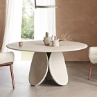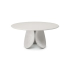 Il progetto del tavolo-scultura Maxim nasce dal legame inscindibile tra la sua forma, costituita da tre petali e il materiale in cui è realizzato. Proprio come una scultura che emerge dalla materia tra le mani del maestro, allo stesso modo, osservando questo tavolo rotondo di design è possibile percepire lo sforzo e il tempo impiegati dall’uomo per plasmarlo.
