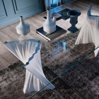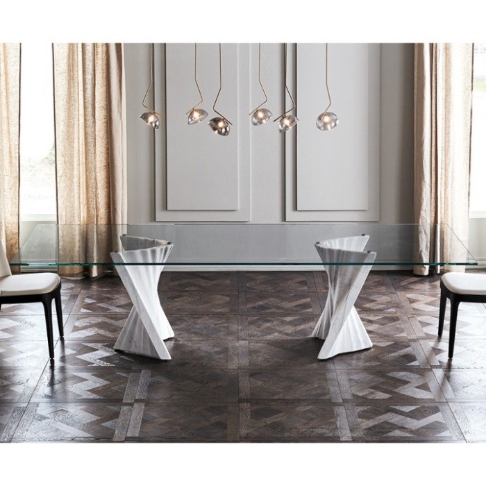 Il tavolo di design in vetro Plisset è un’autentica opera d’arte che unisce eleganza scultorea e raffinatezza materica. La sua base in marmo Palissandro, scolpita con una linea fluida e dinamica, richiama i drappeggi delle antiche statue greche, evocando un senso di movimento e armonia. Il piano in cristallo trasparente, invece, esalta la bellezza naturale del marmo, permettendo alla luce di attraversarlo e creare suggestivi giochi di ombre e riflessi che arricchiscono ogni ambiente con un’atmosfera sofisticata e contemporanea.