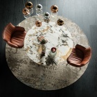 Le sedute ideali da associare a questo modello di tavolo tondo in ceramica sono le poltroncine basse della collezione Lounge abbinata, oppure la collezione di pouf, a seconda che si voglia dare vita ad un ambiente più confortevole o più informale.