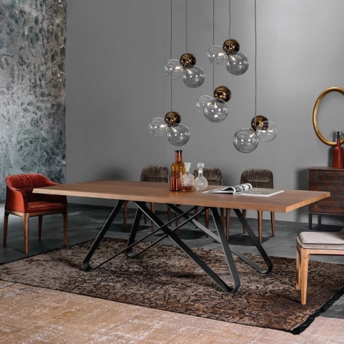 Status è un tavolo pensato per essere al tempo stesso protagonista raffinato e compagno solido in ogni ambiente living. La sua struttura nasce da un sapiente incontro di materiali: il metallo sagomato delle gambe, dalle linee fluide ed eleganti, si combina con la naturalezza del legno e l’eleganza contemporanea del gres porcellanato dei ripiani.