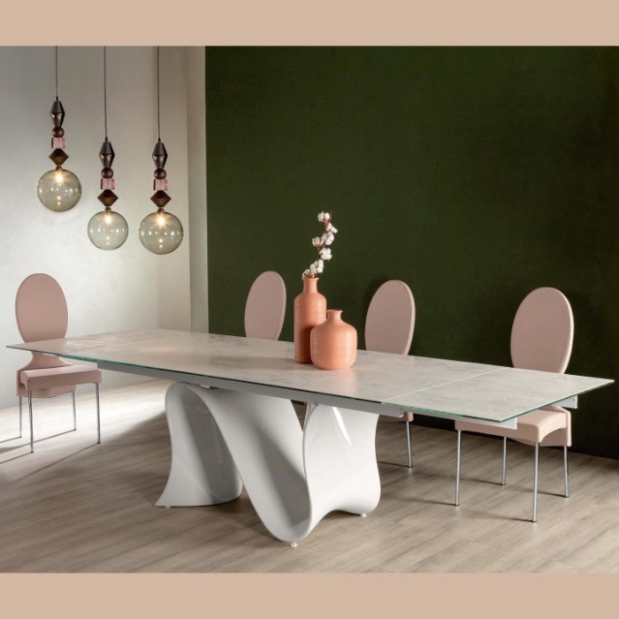 Wave è il risultato di un'attenta ricerca su materiali innovativi e tecniche di lavorazione avanzate, che ha dato vita a un tavolo di straordinaria espressività formale. Protagonista assoluta è la base in Baydur, un materiale poliuretanico ad alta densità, che consente di ottenere forme complesse e fluide, come quella di un’onda in movimento. Questa base scolpita evoca con forza l’energia dinamica della natura, ma al contempo si trasforma, diventando sostegno per il piano superiore: una transizione simbolica dal moto alla quiete. Il top, disponibile in diverse finiture come vetro, marmo o ceramica, si integra perfettamente nella composizione, donando equilibrio e raffinatezza all’insieme. Wave è un tavolo che coniuga design scultoreo, innovazione tecnica e valore estetico, rappresentando una scelta ideale per chi cerca un elemento d’arredo che non sia solo funzionale, ma anche fortemente evocativo e scenografico.