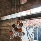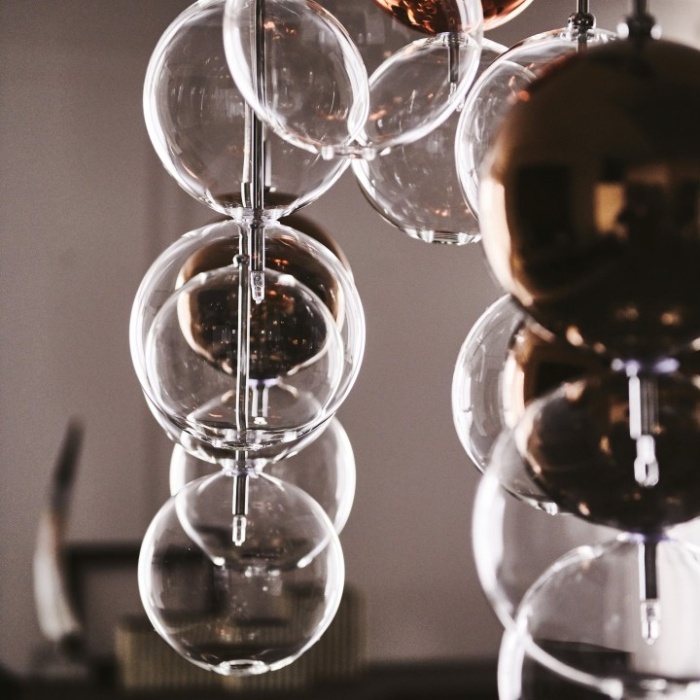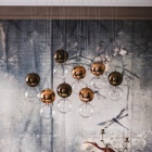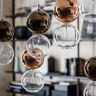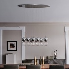 Una composizione dinamica di globi delicati che, sospesi a mezzaria, danno unicità e carattere all'ambiente. Il lampadario di design Apollo, ideato dal designer Oriano Favaretto, può avere diverse configurazioni da 2 a 16 sfere, ciascuna delle quali è in grado di esaltare le forme e i volumi degli arredi circostanti. Anche il colore dei paralumi in vetro può essere personalizzato per enfatizzare le tonalità della stanza. Ogni coppia di paralumi infatti è formata da una sfera inferiore trasparente e una superiore verniciata con nuance calde e delicate.Questo elegante lampadario moderno illumina con grande originalità e rende inimitabile un ambiente di design contemporaneo.