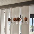 Attacco a soffitto e struttura in acciaio inox. Paralumi in vetro borosilicato nelle finiture come da campionario. Impianto illuminante a 110/220V. Dimmerabile con lampadina idonea (non inclusa) e multidimmer (non incluso).