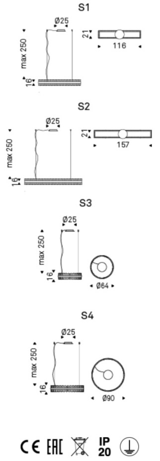 Versione S2: L. 157 x P. 21 x H. 16 cm