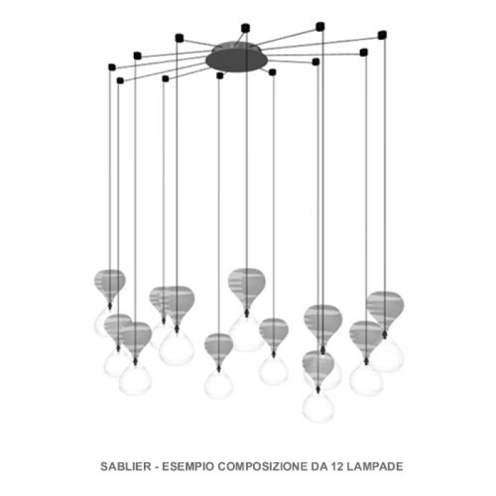 Versione 12 luci: attacco rotondo da 12 paralumi.