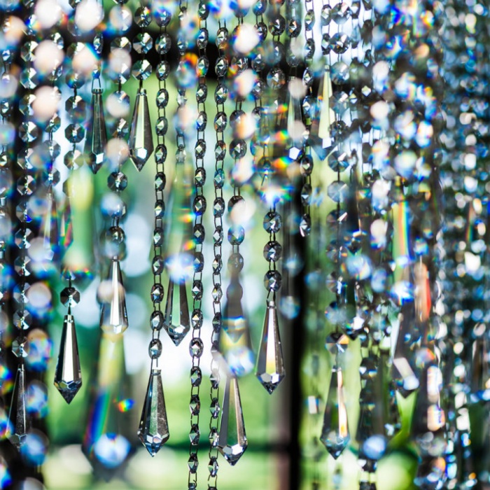 Lampada in acciaio verniciato a polveri epossidiche e rivestita in acciaio inox con struttura in acciaio cromato. Paralume in pendagliere di cristallo.Impianto illuminante a 220/110v da 3x25W.