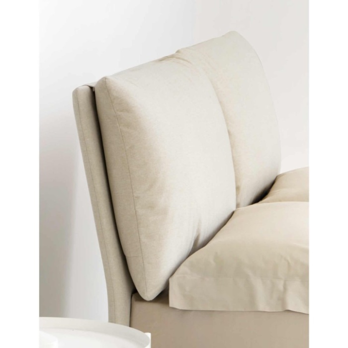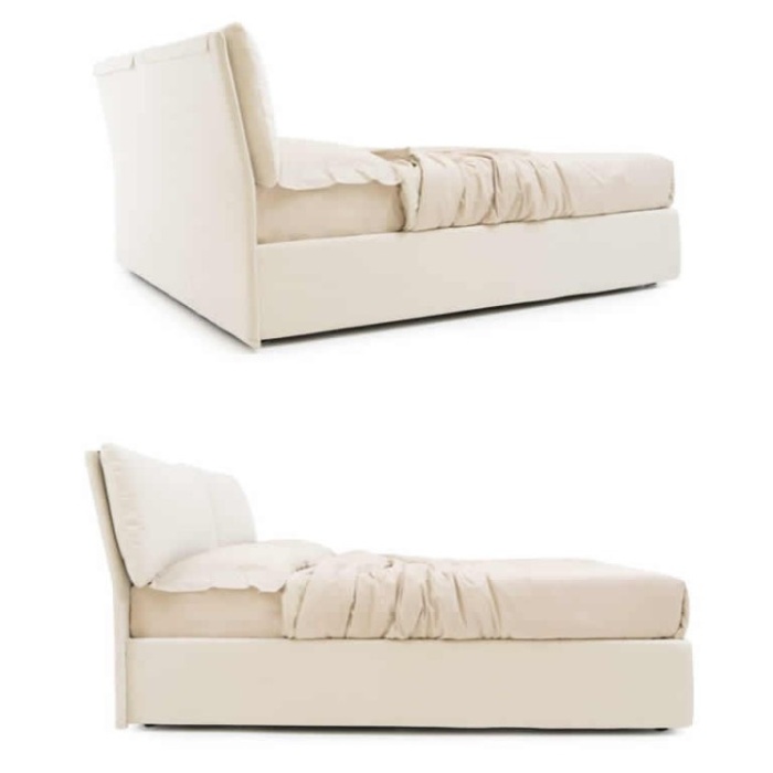 Il segno distintivo del letto Mercurio è senza dubbio la sua testata inclinata. Realizzata con due morbidi cuscini imbottiti affiancati, rappresenta un classico del design che non passa mai di moda. Questa conformazione non è solo esteticamente gradevole, ma funge da schienale ergonomico ideale per chi ama leggere, guardare la TV o godersi un momento di relax prima di dormire, abbracciando corpo e mente in un comfort assoluto.