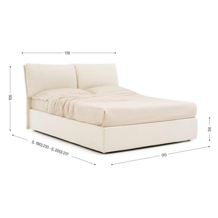 Matrimoniale Standard (rete 160x190/200): L.178 x P.210/217 x H.105 cm